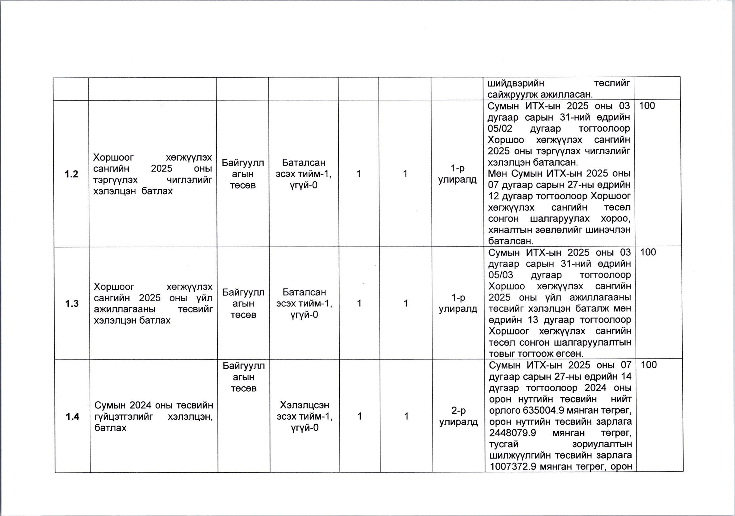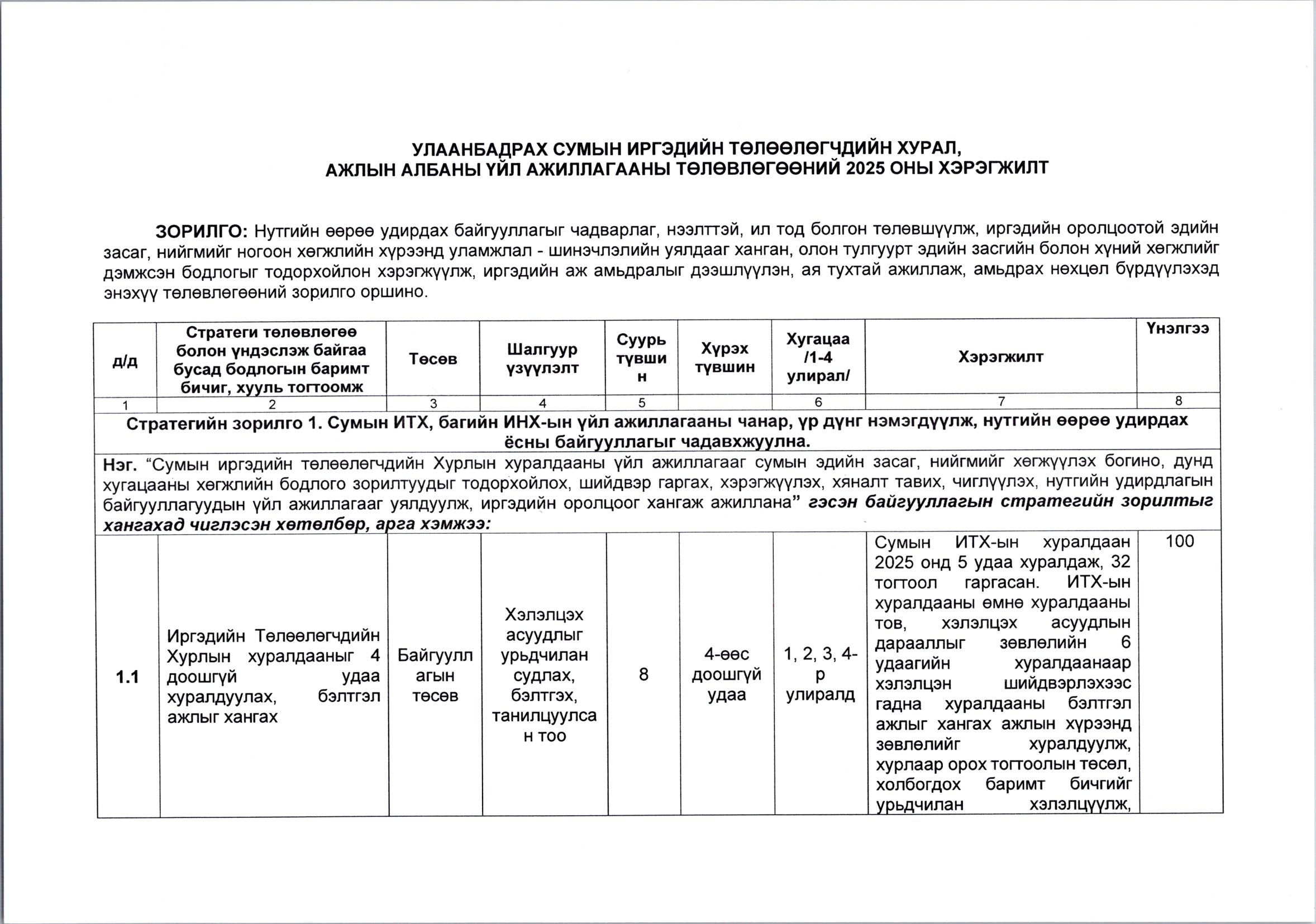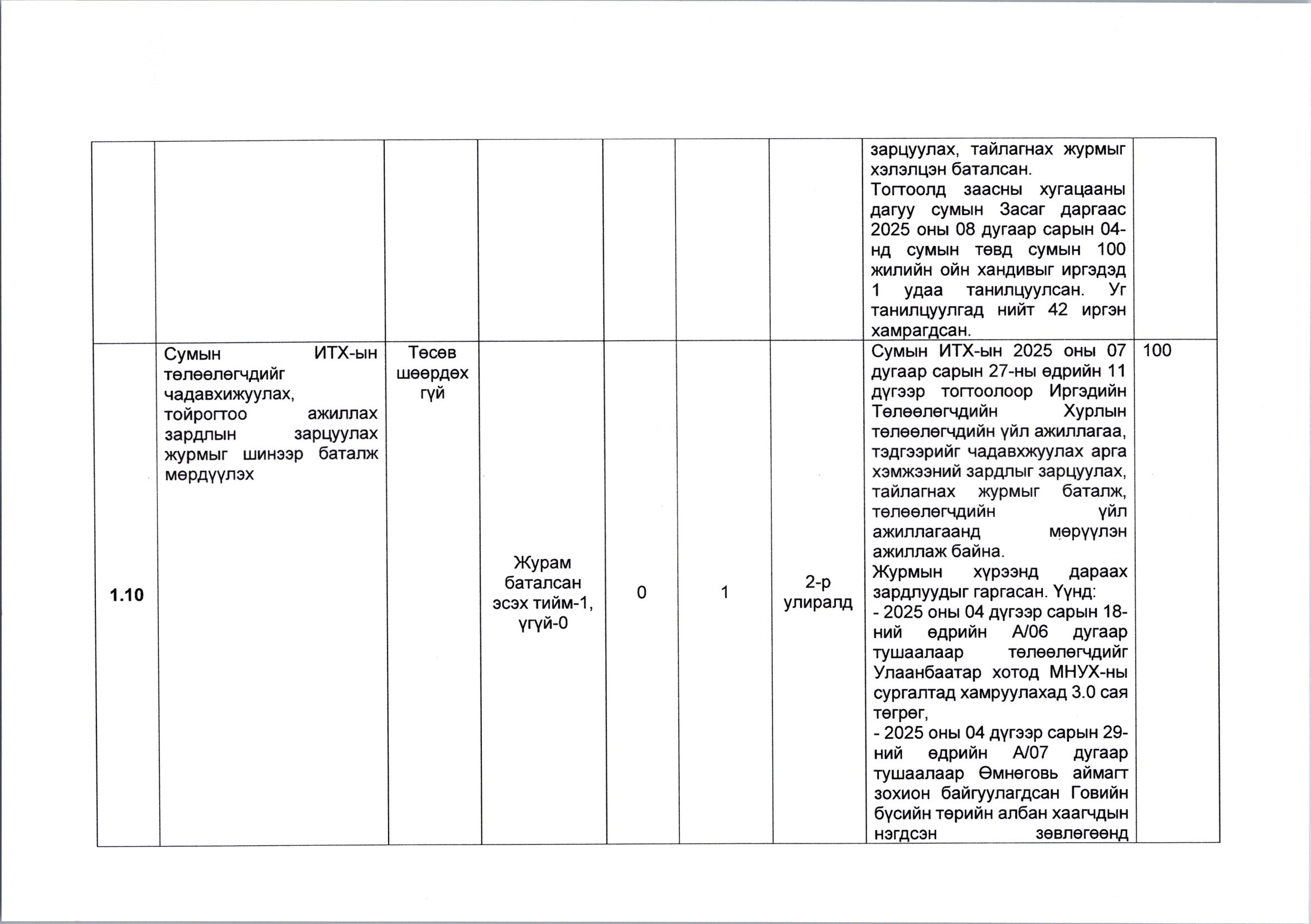Сумын Иргэдийн Төлөөлөгчдийн Хурал, ажлын албаны 2025 оны үйл ажиллагааны тайлан