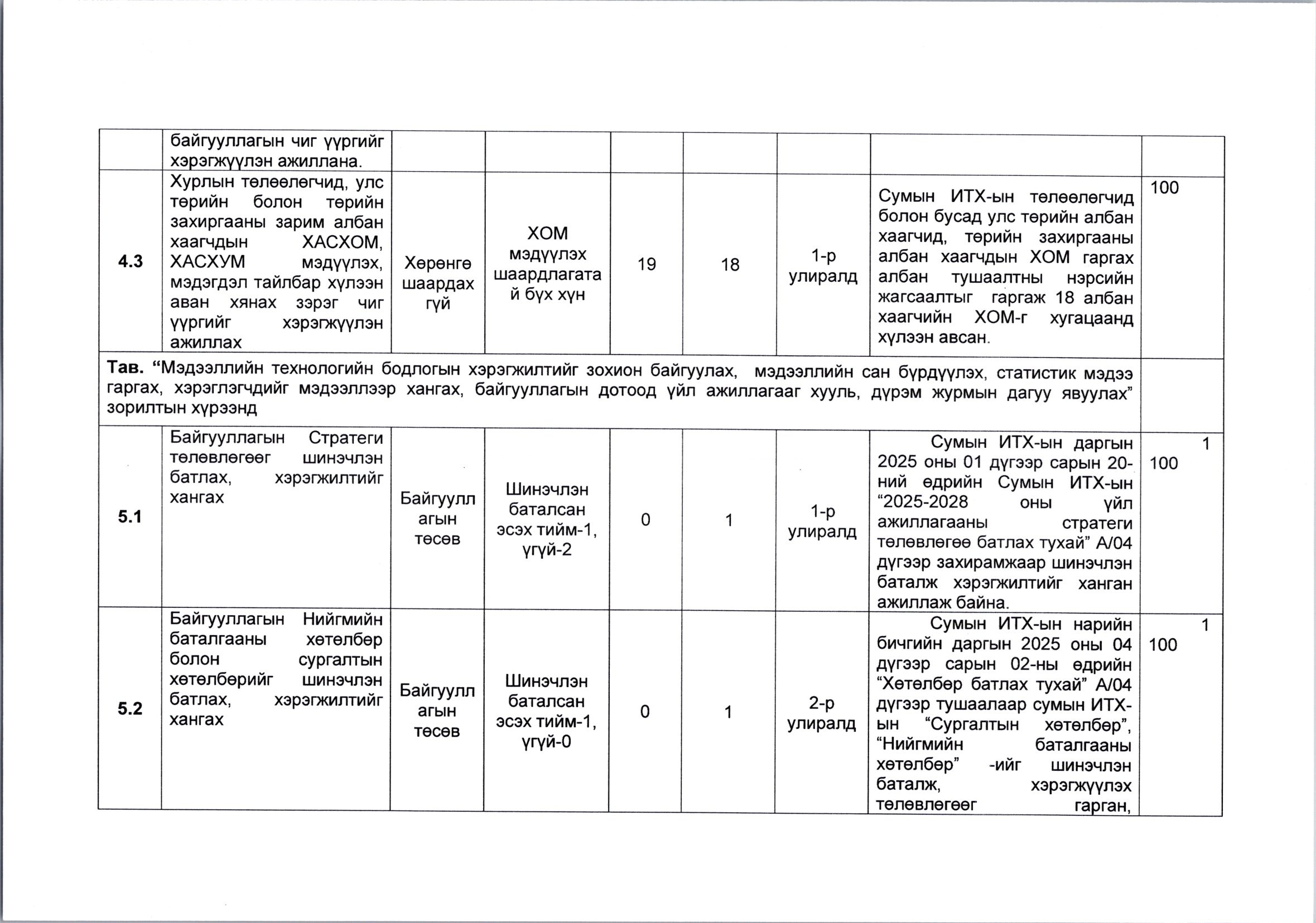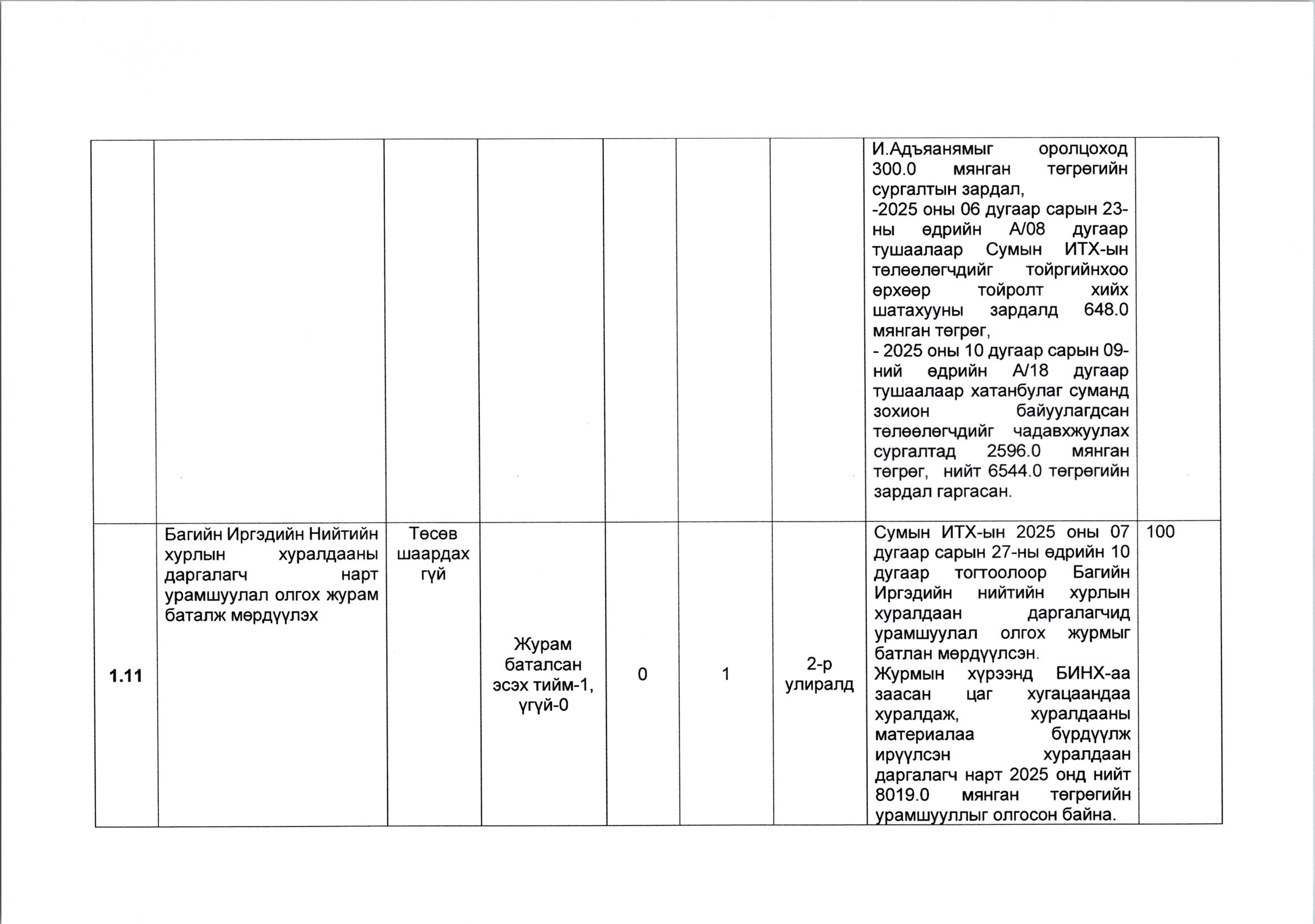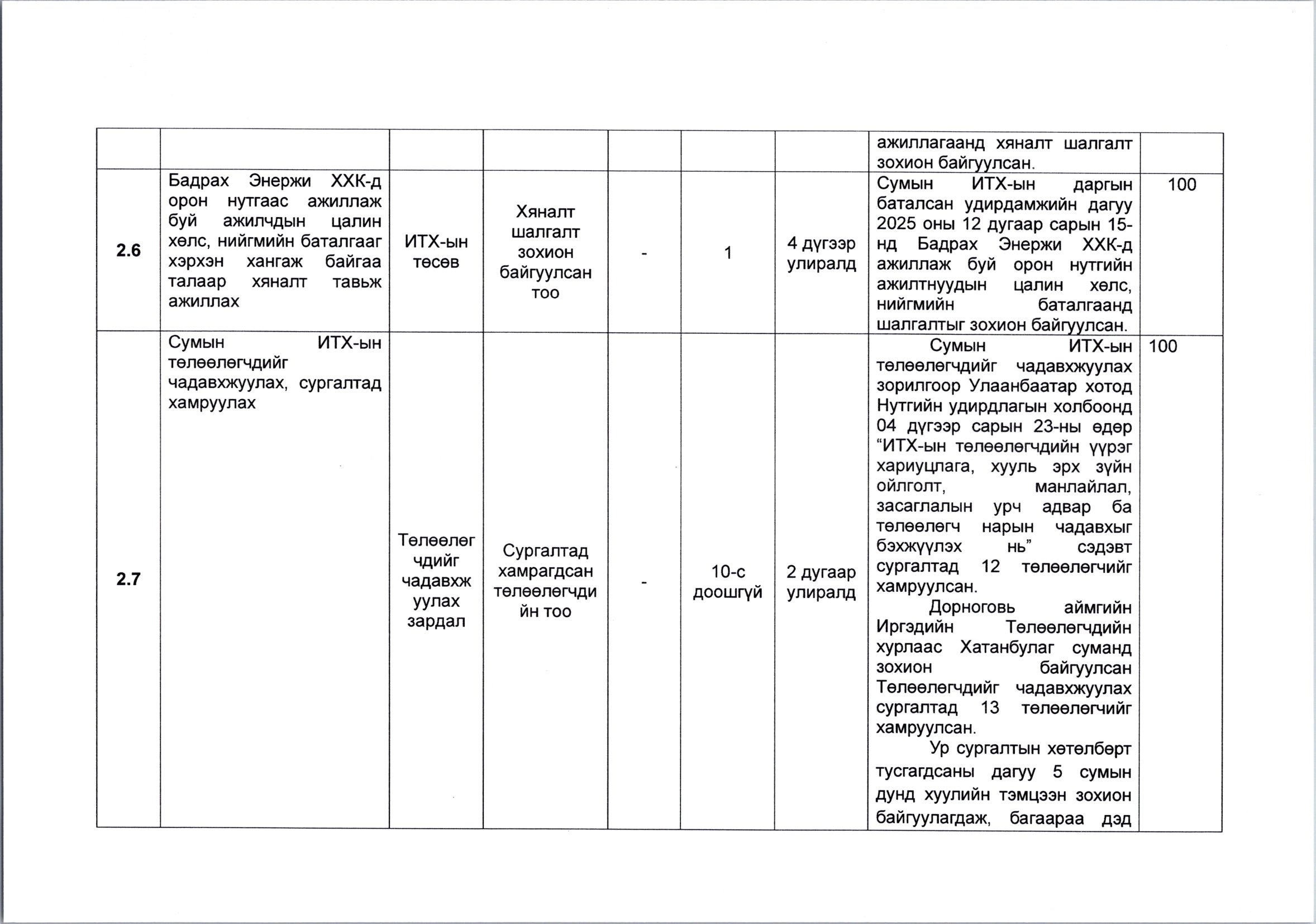 Сумын Иргэдийн Төлөөлөгчдийн Хурал, ажлын албаны 2025 оны үйл ажиллагааны тайлан